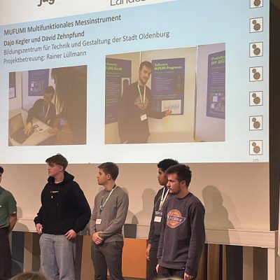 Vom 17. bis 19. März hat Dajo Kegler, Schüler der Fachoberschule Technik (FOT23A), sein Projekt MUFUMI (Multifunktionales Messinstrument) beim Landeswettbewerb Jugend forscht in Clausthal-Zellerfeld vorgestellt. Er hat das Projekt gemeinsam mit seinem Schulfreund David Zehnpfund entwickelt. Beim Regionalwettbewerb in Emden war das Projekt als Regionalsieger für den Landeswettbewerb ausgewählt worden.