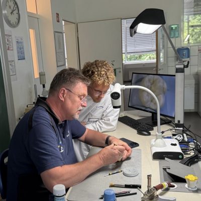 Warum muss ein/e Zahntechniker*in eine Krone in der heutigen digitalen Zeit noch analog herstellen können? Mit dieser Frage eröffnete Herr Dietrich den heutigen Workshop für die Zahntechniker und Zahntechnikerinnen des 2. Ausbildungsjahres.