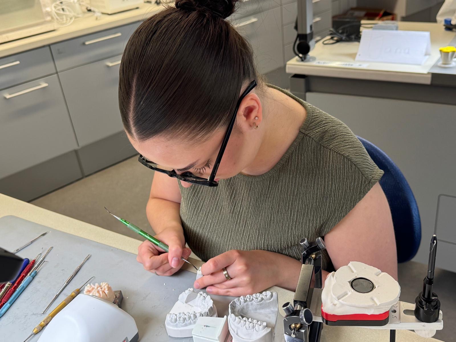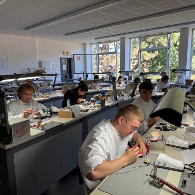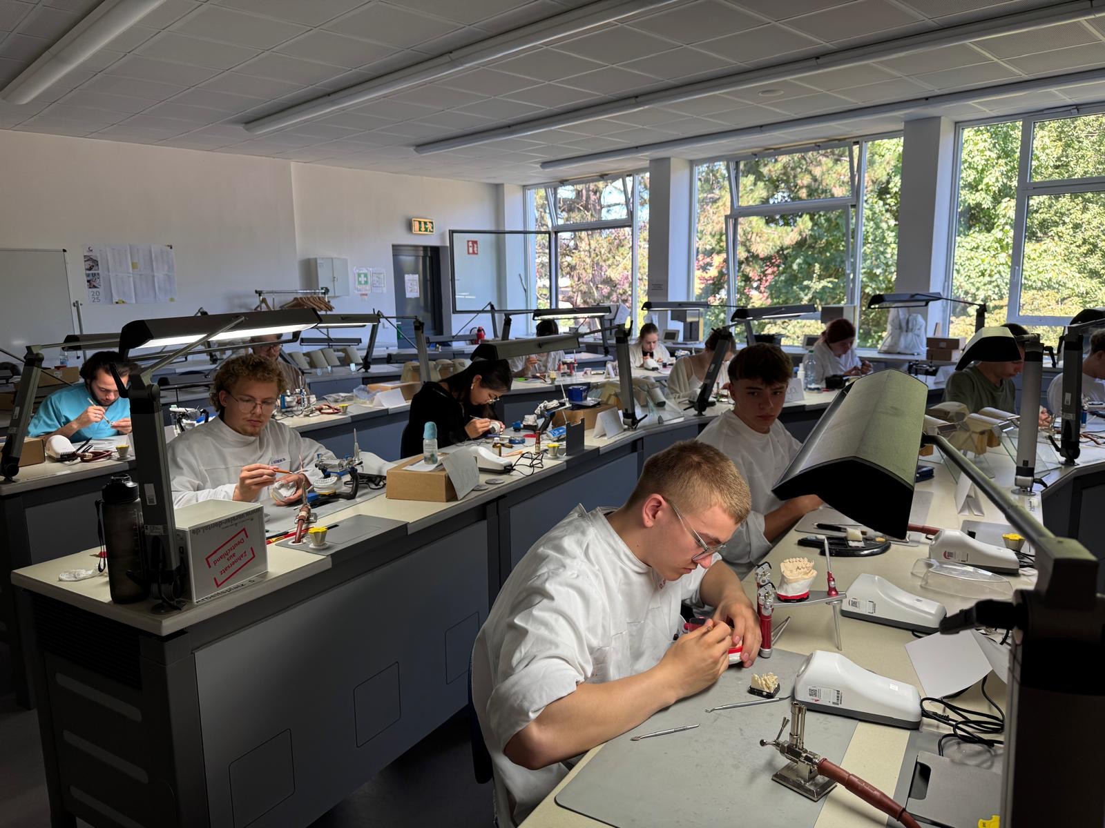 Im Rahmen des Lernfeldes 5, „Eine anatomische Einzelzahnkrone gestalten“, konnte die SZA24 (Zahntechniker*innen zweites Ausbildungsjahr) am 30. Juni 2025 unter Anleitung des Zahntechnikmeisters Jens Dietrich vom Institut für Zahntechnik Niedersachsen Bremen im schuleigenen Labor des BZTGs einen Aufwachskurs absolvieren.