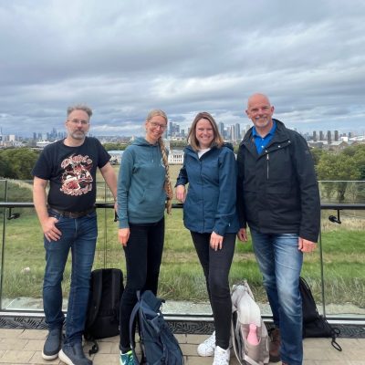 Anschließend traf sich die Reisegruppe in North-Greenwich, von wo aus man den Hügel zum Observatorium und dem Greenwich Meridian erklomm. Besonderes Highlight hierbei war wie immer das Gruppenfoto vor der Skyline Londons (mit royaler Beteiligung 😉, welche die Reise für alle Teilnehmer unvergesslich machte.