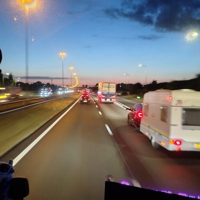 Die Abreise von der Messestraße an den Weser-Ems-Hallen erfolgte am frühen Samstagabend bequem mit dem Bus „Gargamel“ der (sehr empfehlenswerten) Firma Artal Reisen und führte dann durch Holland, Belgien und Frankreich zur Fähre von Calais nach Dover.