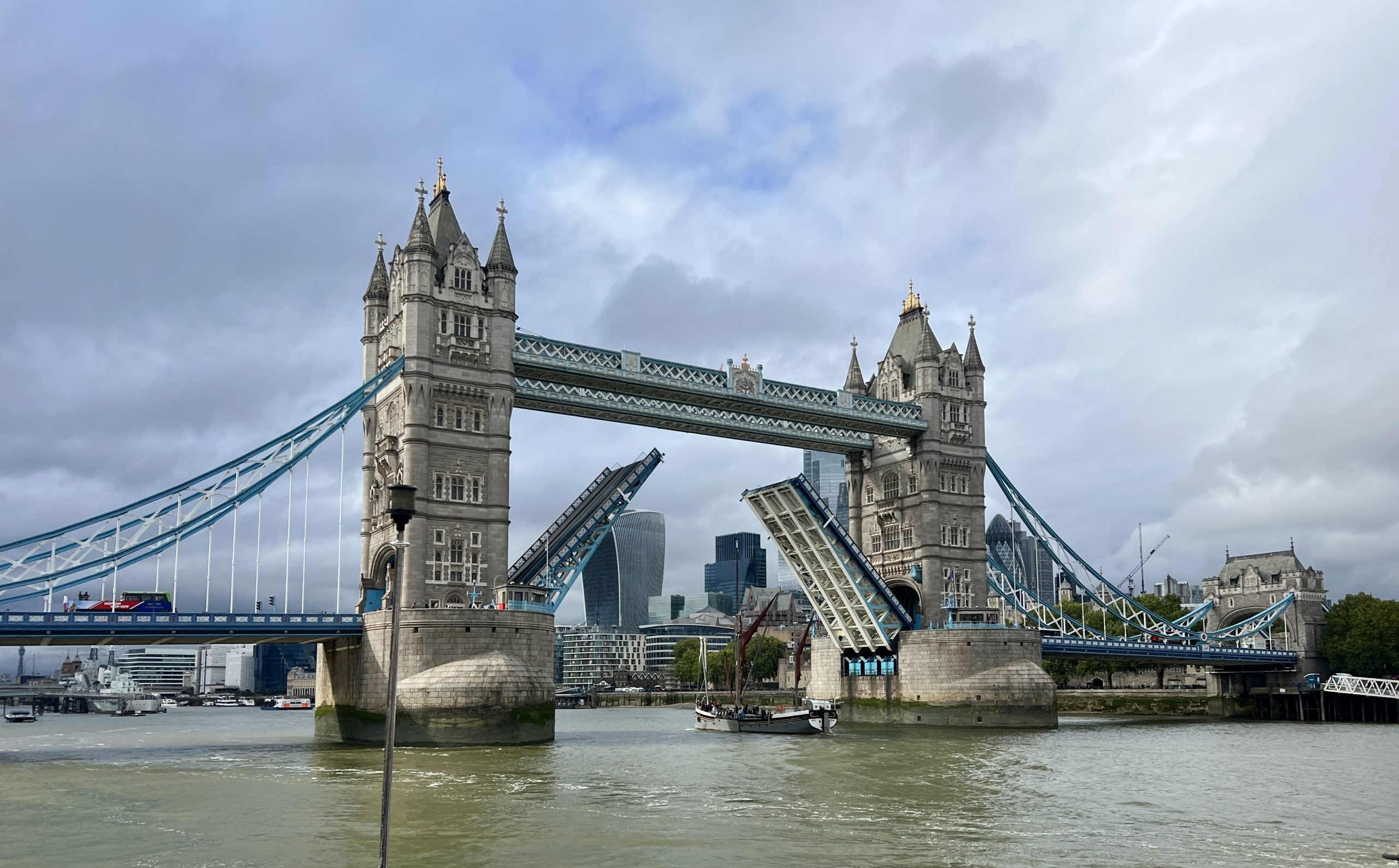 Die anschließende Schifffahrt auf der Themse von Greenwich nach Westminster bot einen überwiegend atemberaubenden Blick auf die Sehenswürdigkeiten Londons beidseits der Themse, nur kurz unterbrochen von einem heftigen Regenschauer, der aber im Unterdeck des Schiffes trocken überstanden werden konnte.