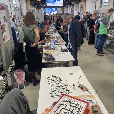 Rainer Lüllmann , Lehrer des BZTG für Elektrotechnik, Mathematik und Informatik, stellte das innovative Projekt „Kontaktfreies Steuern des BRIO-Labyrinths“ vor. Dieses Projekt wurde maßgeblich von Nevio Matern entwickelt, der bis zum Sommer Schüler an der Berufsfachschule für Informatik am BZTG Oldenburg war. Bei diesem spannenden Experiment steuern die Teilnehmer das Rollen einer Kugel durch ein Labyrinth, indem sie ihre Hände über zwei Distanzsensoren heben und senken.