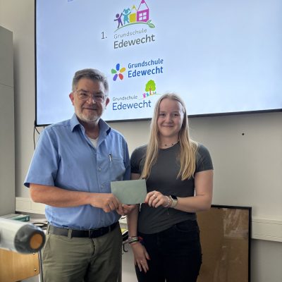 Die Siegerehrung konnte aufgrund von Zeitgründen erst in diesem Schuljahr durchgeführt werden, was der Vorfreude auf die Bekanntgabe der Gewinner*in jedoch keinen Abbruch tat. Besonders stolz sind wir auf die Preisträgerin Astrid Boehnke von Cewe, deren Logo-Design durch Kreativität und eine präzise Umsetzung besticht. Ihr Entwurf wird künftig das Bild der Grundschule Edewecht prägen und spiegelt die Werte und Ziele dieser Schule wider.