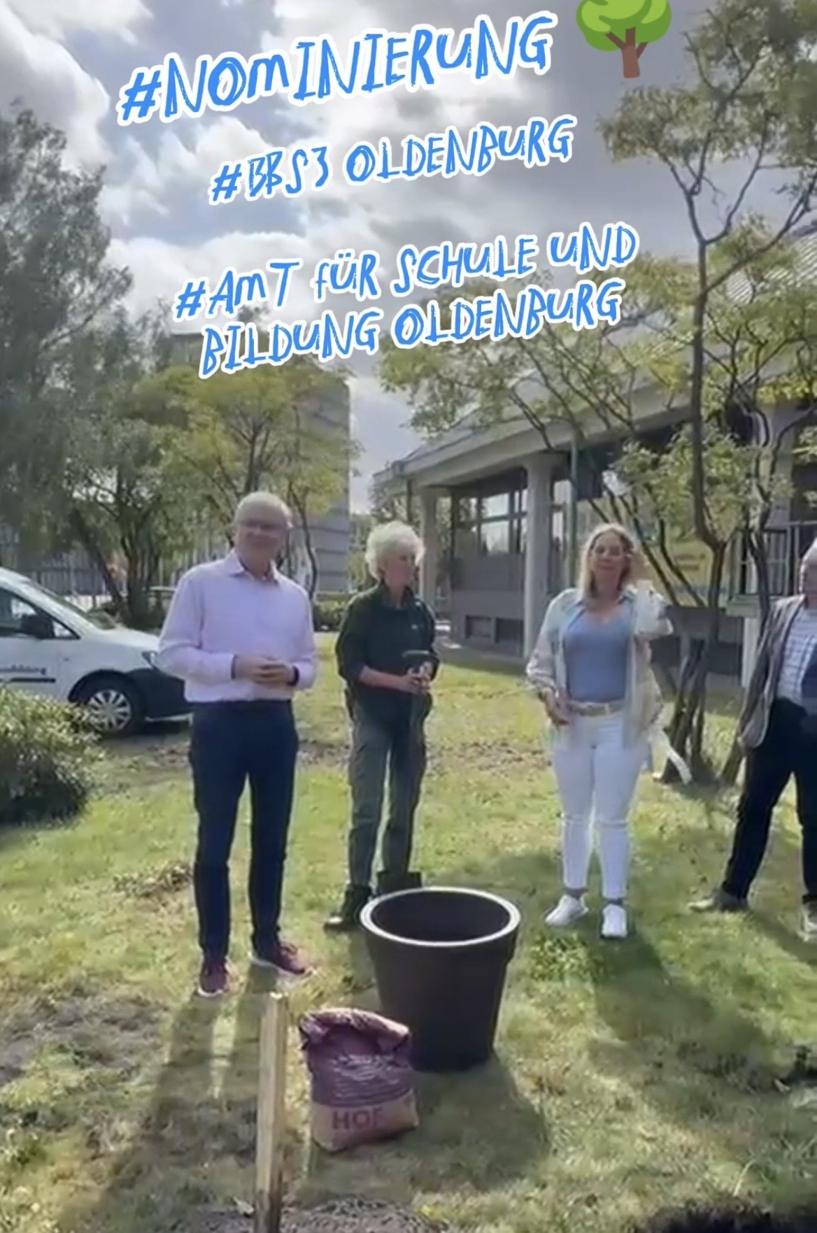 Um die Challenge weiterzugeben, nominieren wir die BBS 3 in Oldenburg sowie das Amt für Bildung und Schule der Stadt Oldenburg. Lasst uns gemeinsam für eine grünere Zukunft einstehen und weitere Bäume pflanzen!