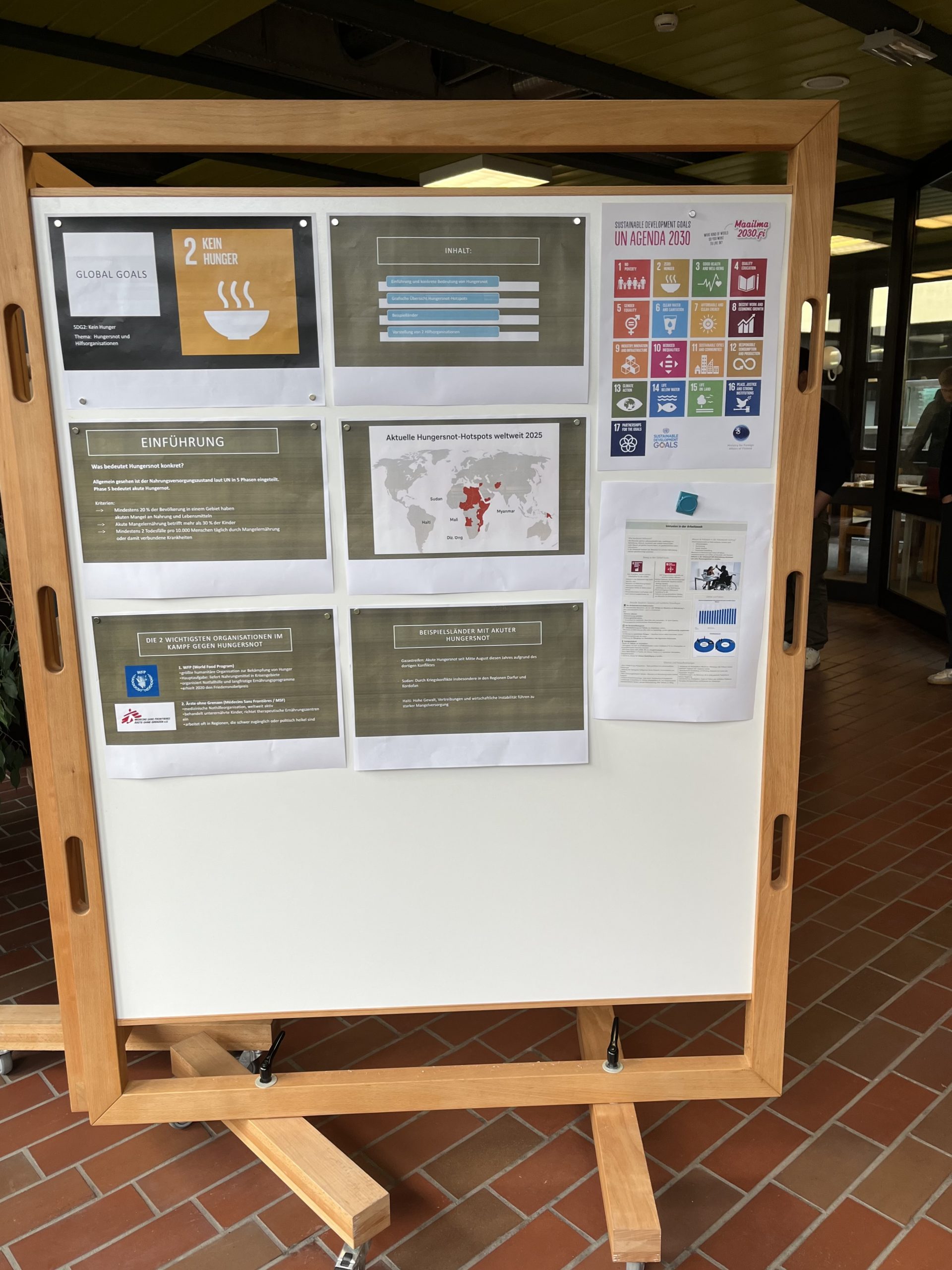 In diesem Zusammenhang haben sie sich unter anderem mit der globalen Hungersnot beschäftigt. Auch Themen wie Gesundheit und Wohlergehen, hochwertige Bildung sowie bezahlbare Energien standen im Fokus ihrer Projektarbeit. Dabei haben sie Hintergrundinformationen recherchiert und Herausforderungen diskutiert.