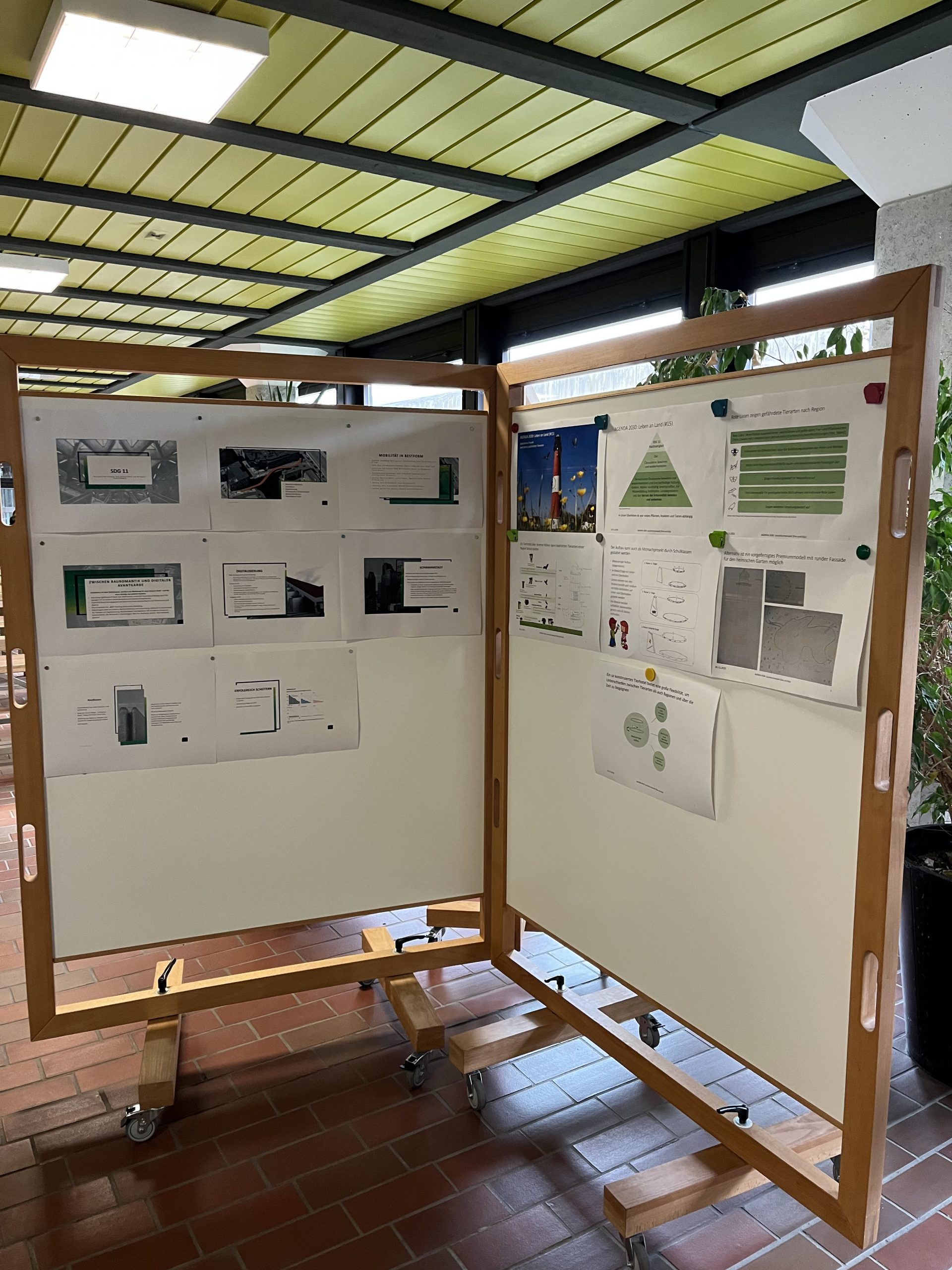 Die Ergebnisse dieser intensiven Auseinandersetzung sind nun in der Pausenhalle des Standorts an der Straßburger Straße auf Stellwänden ausgestellt. Die Schüler*innen präsentieren ihre Erkenntnisse durch kreative und informative Darstellungen, die die Bedeutung der Ziele für die Gesellschaft verdeutlichen.