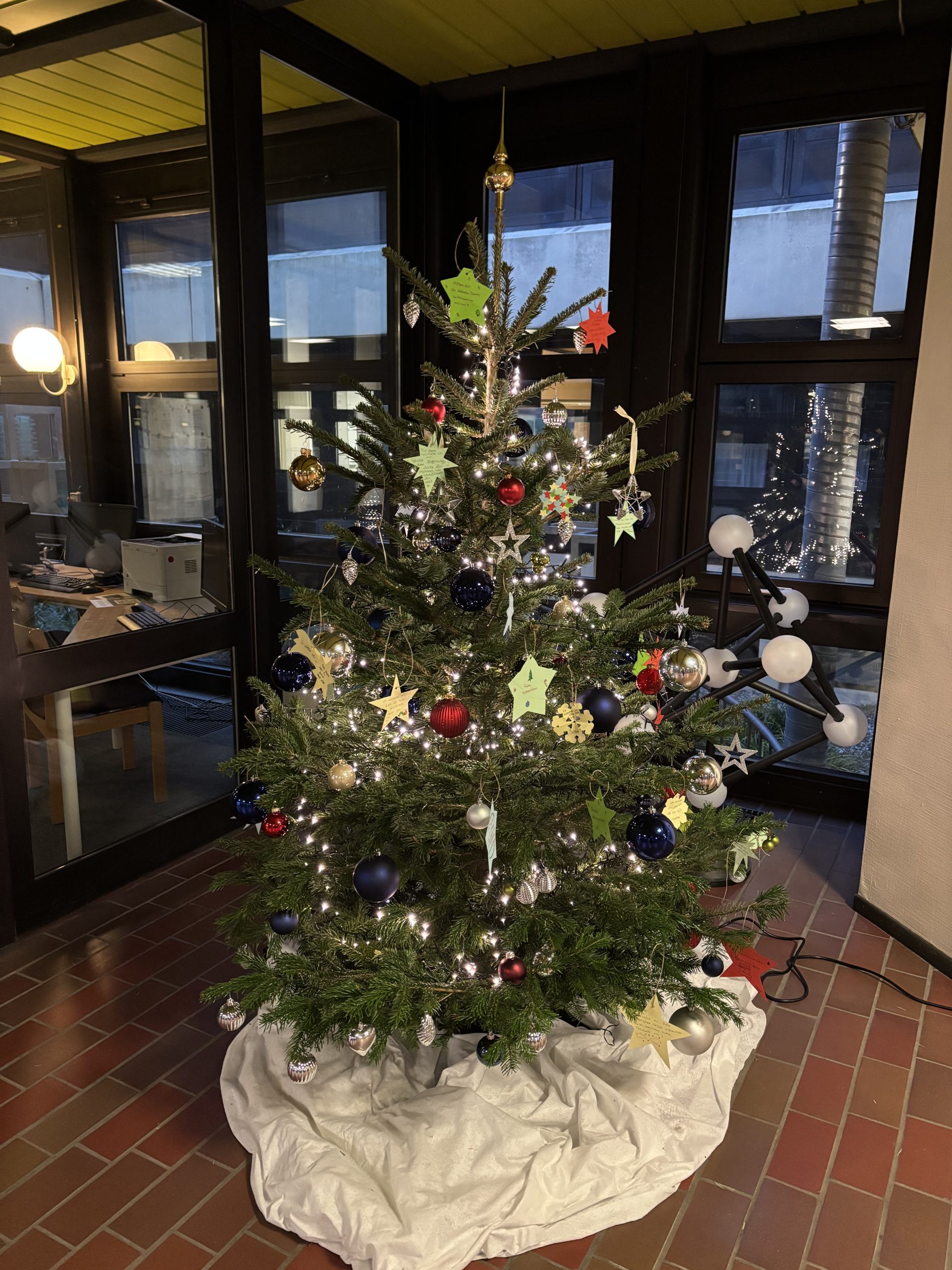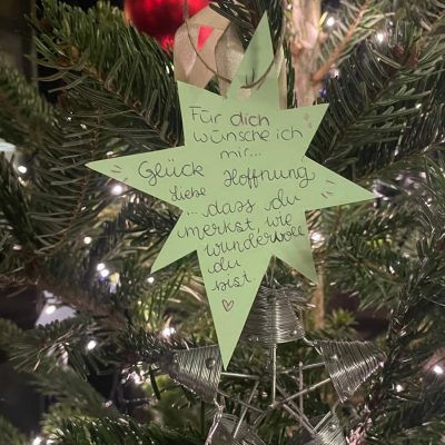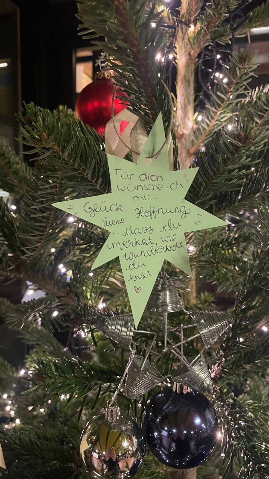 Optimiert wurde der Baum durch die Optiker*innen, die persönliche Wünsche auf Sterne geschrieben haben. Diese Sterne wurden liebevoll in die Dekoration des Baumes integriert und sorgten für nachdenkliche und besinnliche Momente. Jeder Stern erzähl eine eigene Geschichte und spiegelt die individuellen Hoffnungen und Träume der Schüler*innen wider.