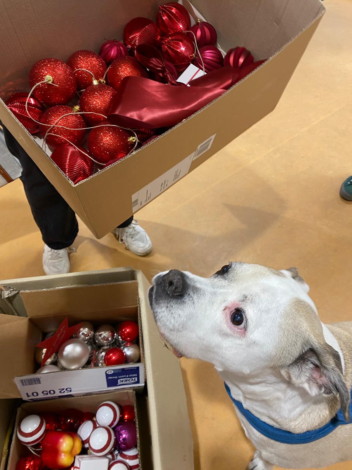Natürlich war auch unser vierbeiniger Freund @butch_btbh mit von der Partie. Neugierig inspizierte er die Kisten mit dem Baumschmuck, auf der Suche nach einem versteckten Leckerchen. Seine Anwesenheit sorgte für zusätzliche Freude und lockerte die Stimmung während der Dekorationsarbeiten auf.