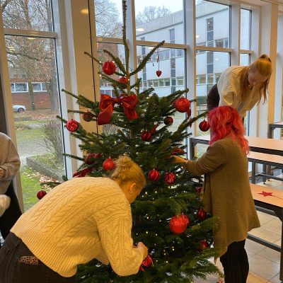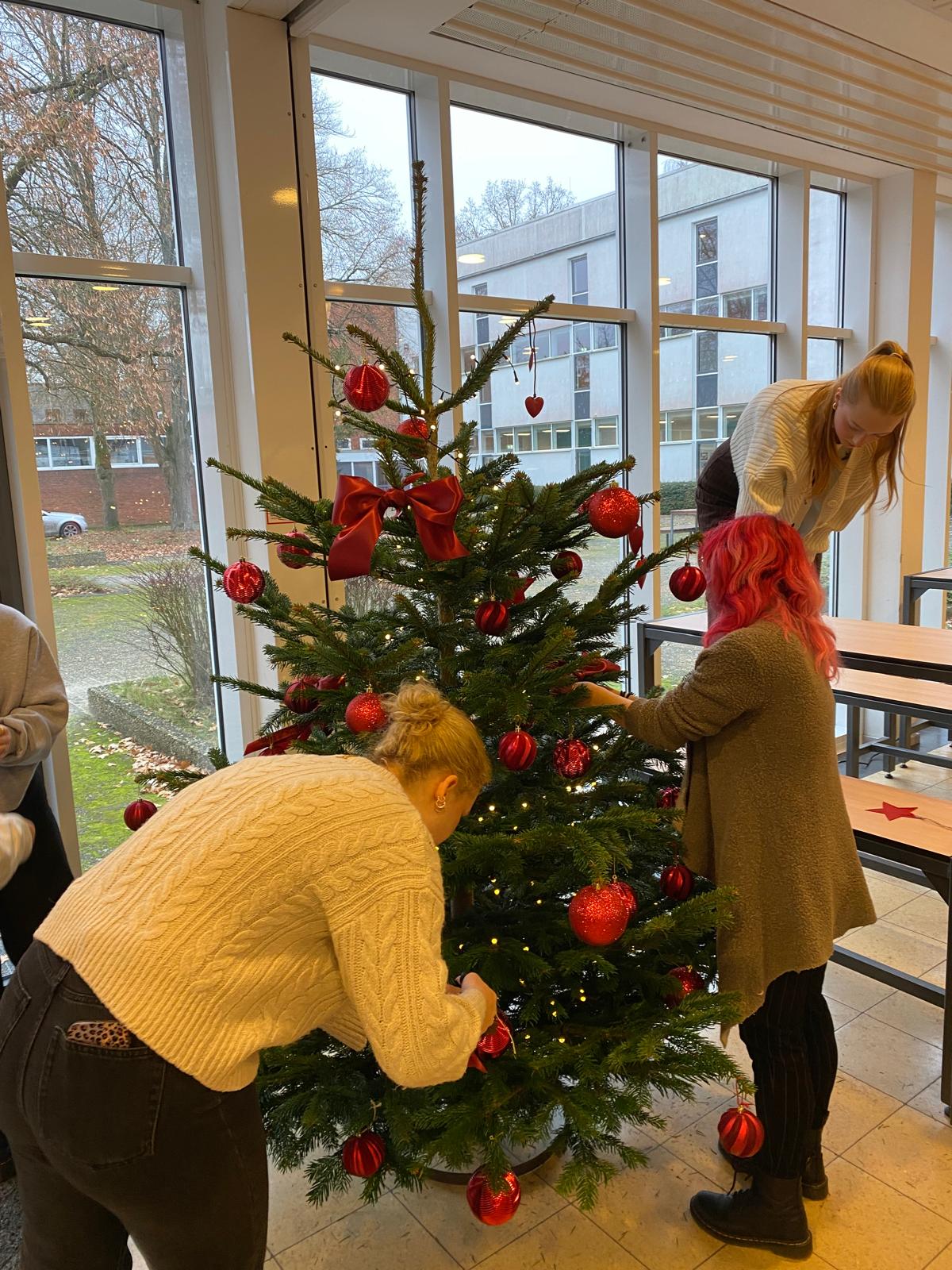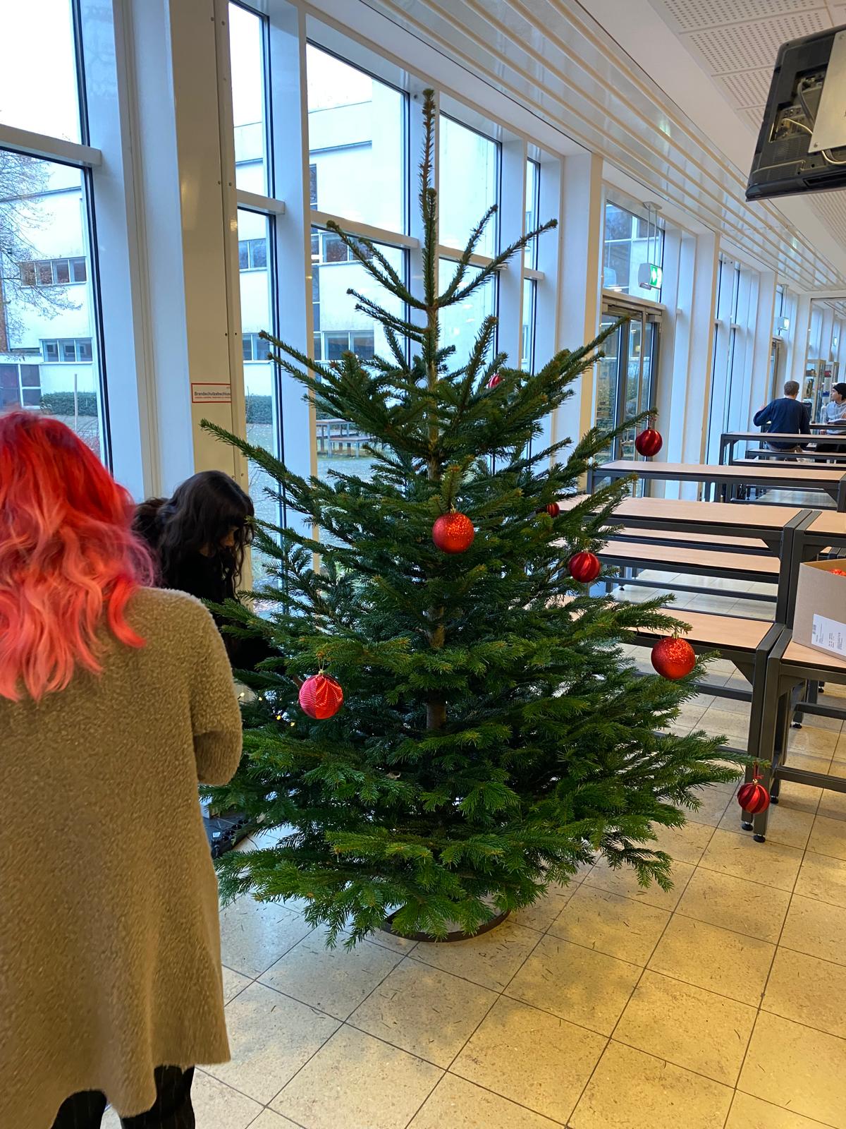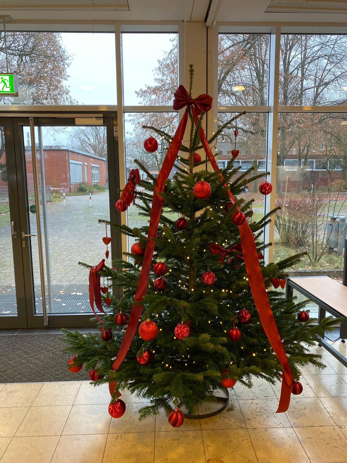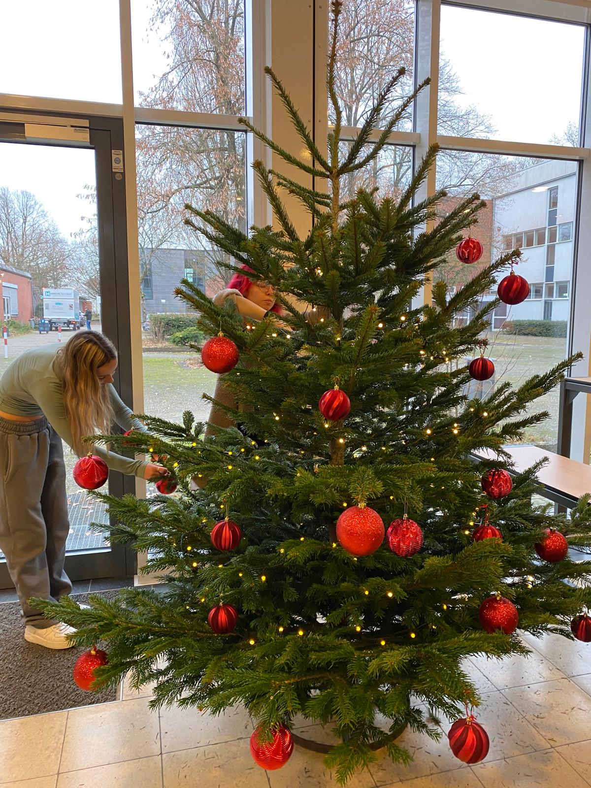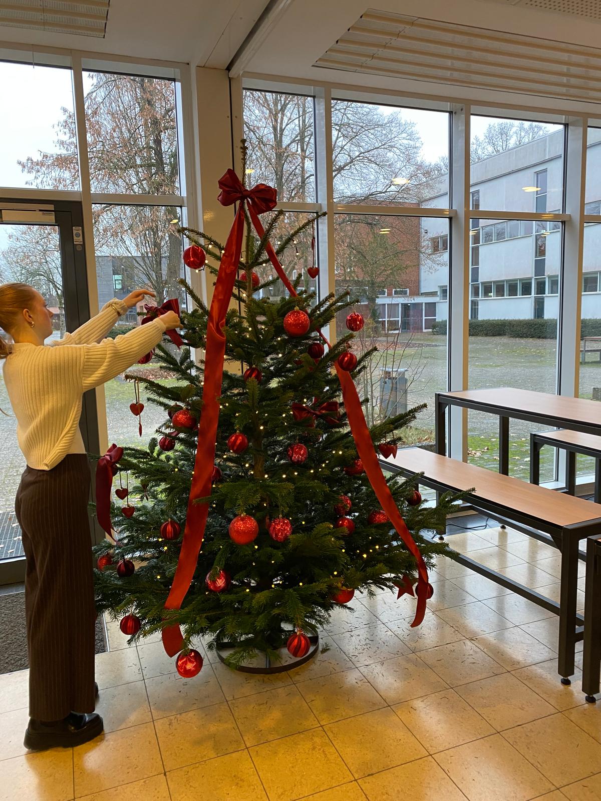 In der vergangenen Woche haben sie mit viel Engagement und Kreativität den Weihnachtsbaum in der Pausenhalle geschmückt und damit eine festliche Atmosphäre geschaffen. Ihr Einsatz hat nicht nur den Baum zum Strahlen gebracht, sondern auch die gesamte Schulgemeinschaft in Weihnachtsstimmung versetzt.