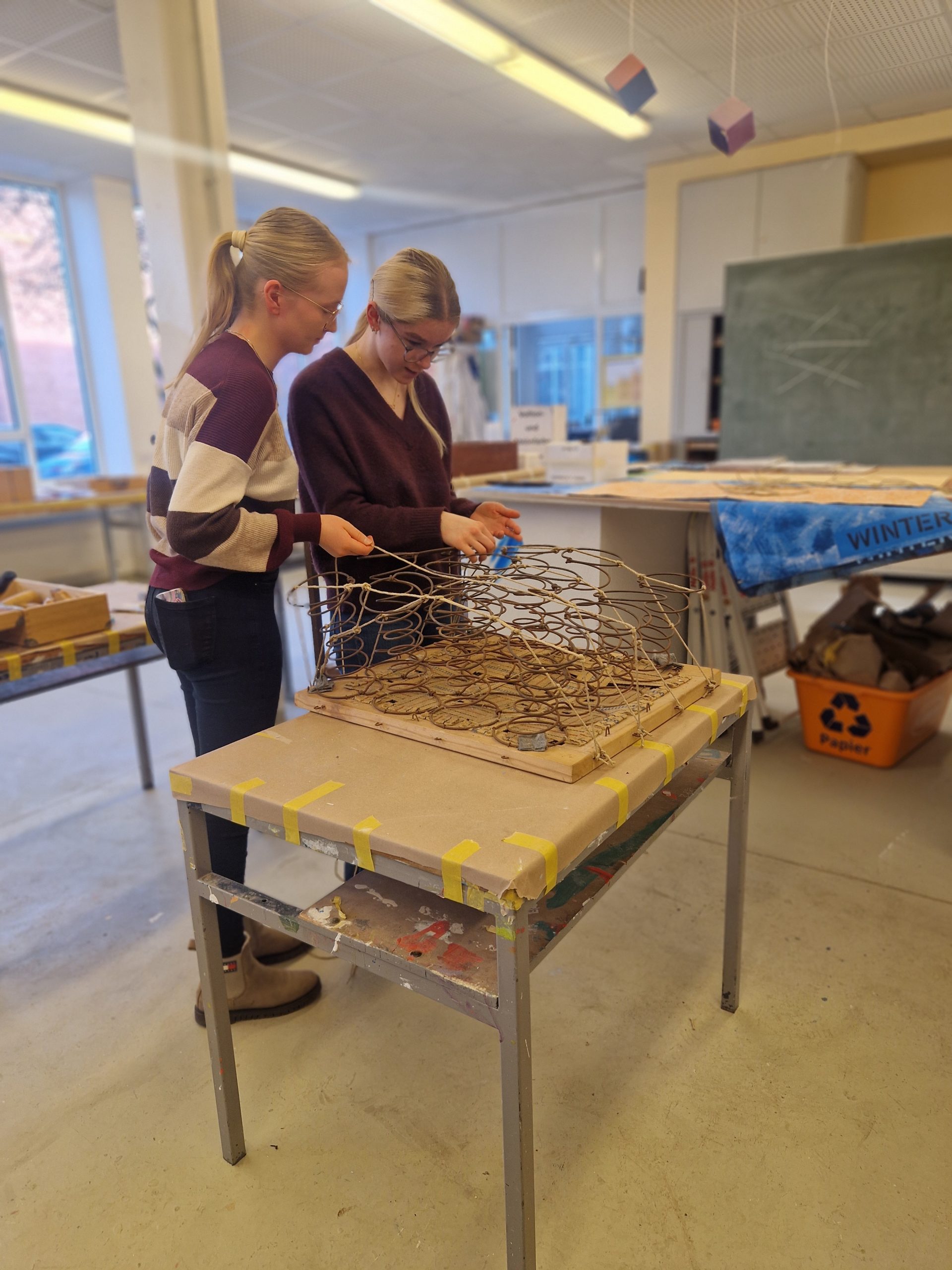 Im Lernfeld „Instandsetzen von Polstermöbeln“ arbeiten sie an ihren letzten Projekten, bevor sie im Sommer zur Gesellenprüfung antreten.